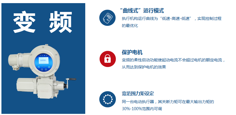 2SA8系列智能變頻電動執行機構是SURPASS開發的新一代智能型變頻電動執行機構,該產品采矢變頻控制,模糊控制,自適應控制等技術,即可改變電機轉向,更可對電機進行精確控制,可完全替代進口執行機構。2SA8系列為大屏幕觸摸按鍵設計,可通過手機APP對執行機構進行遠程調試、操作、監控、診斷及信息下載。具有變頻調速,高效節能,緩開緩閉,精確定位,缺相保護,自診斷,總線技術,遠程控制(可手機APP遠程操控) ,觸摸按鍵等特點。